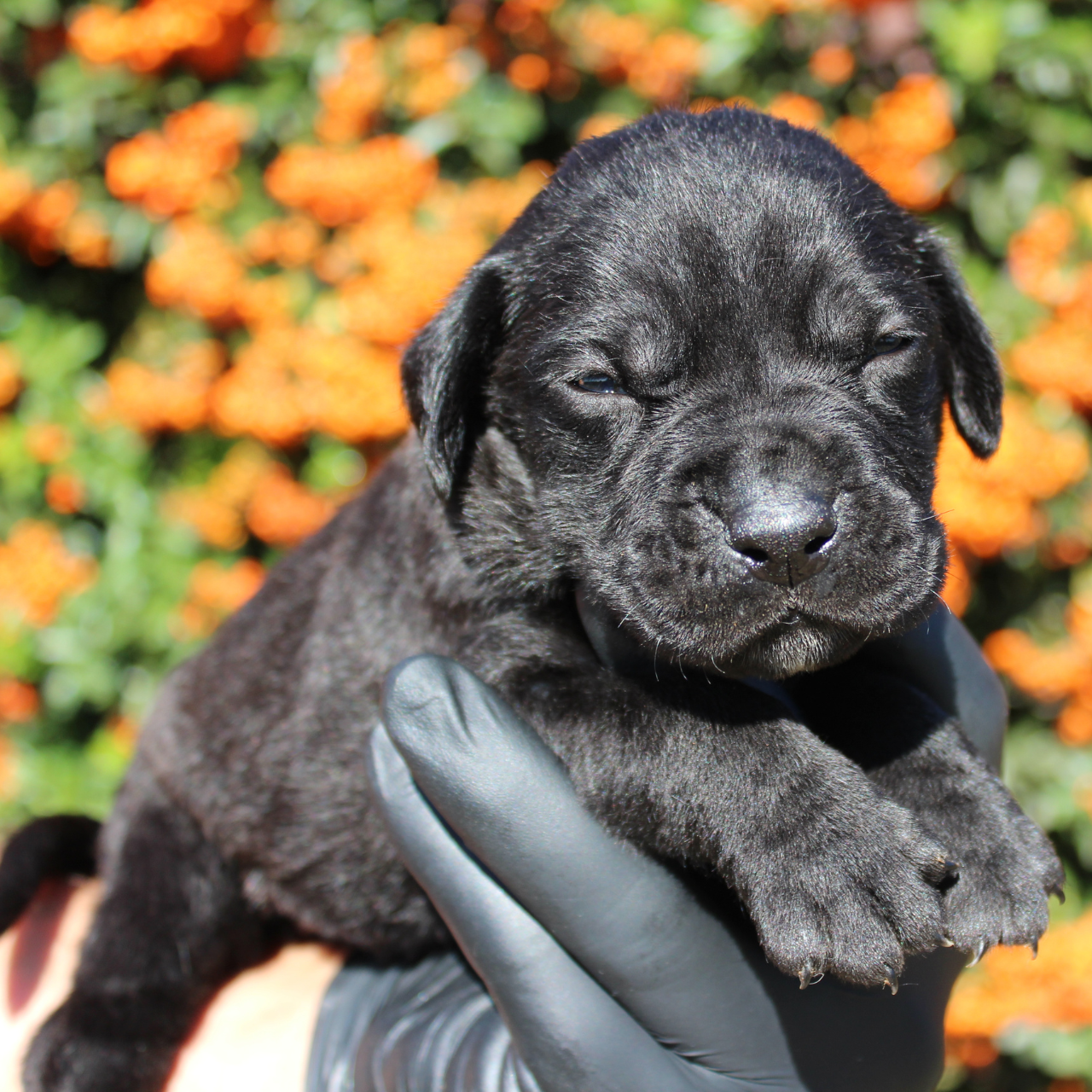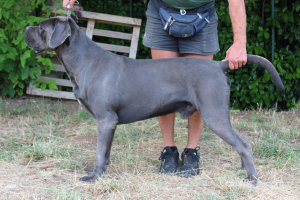 Otto cuccioli attivi e vivaci, che denotano coraggio e importante attenzione agli stimoli. Un solo cucciolo grigio con leggere tigrature, tutto il resto della cucciolata ha il mantello nero, come il velluto, come la mamma. Inoltre il papà, il nostro Gin Tonic de I Testoni è Campione Sociale 2025. Sono entrambi lastrati ufficialmente sia alle anche che ai gomiti e hanno il DNA depositato.